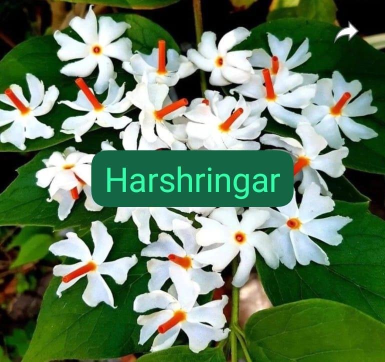 Harsingar is a beloved flowering plant admired for its sweet night-time fragrance and graceful blooms. Native to South and Southeast Asia, it produces delicate white flowers with saffron-hued centers that bloom after sunset and gently drop by dawn. In Indian culture, Harsingar holds both spiritual and medicinal importance—its flowers are often used in religious offerings, while its leaves and bark are known in Ayurveda for treating ailments like fever, joint pain, and skin disorders. Thriving in well-draining soil and moderate sunlight, Harsingar adds a serene charm to gardens, courtyards, and temple grounds, making it a symbol of purity, devotion, and natural elegance.